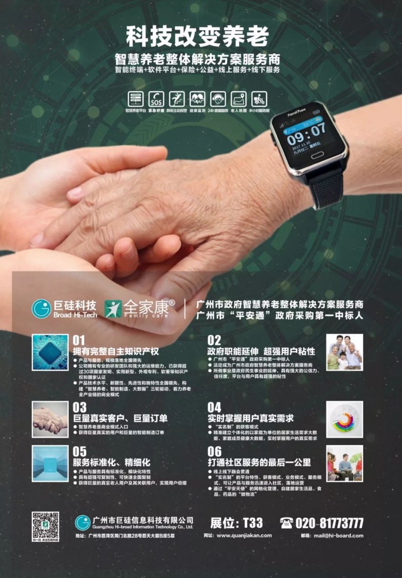 广州市政府“平安通”项目第一中标人的巨硅科技,自去年11月“全家康平安通”服务全面上线以来,依托全家康服务平台7X24小时不间断的在线服务,数十种线上线下养老服务、居家服务无缝对接。使得广州符合条件的老人群体及其家属享受到了紧急呼援、定位服务、咨询转介、定期关怀、心理慰藉、提示服务、健康监测、在线问诊、电话医生等“全家康平安通”服务。