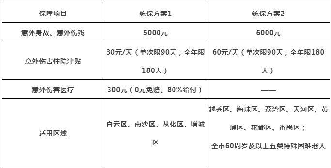 广州推出的“银龄安康行动”,由政府出资,广州为全市60周岁及以上户籍老年人每人每年购买一份20元的意外伤害保险,保障内容包括意外身故(意外伤残)和意外住院津贴。